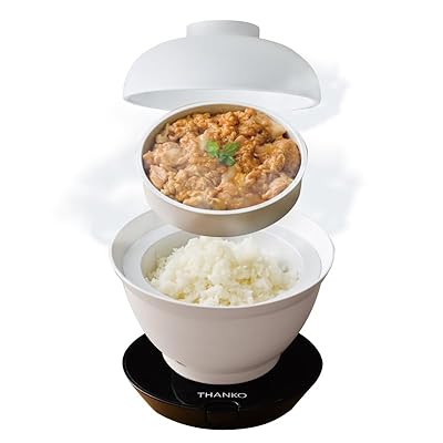 DNBRRCSWHは丼型で高さがあり、据え置き向け。2段構造でおかずも同時調理できる設計です。