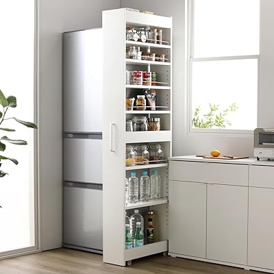 | 幅 × 奥行 × 高さ | 約15.6cm × 57.7cm × 165.4cm。冷蔵庫横や洗濯機横にも置きやすい絶妙サイズ。 | 幅10〜20cmから選択可能。奥行55.4cm × 高さ180.2cmで天井近くまで収納可能。隙間の幅に合わせて最適なサイズが選べるのが強み。 |